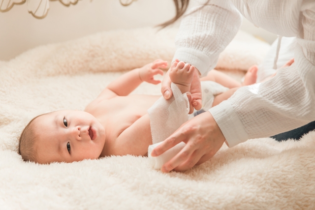 マッサージは赤ちゃんの機嫌がよいときに行いましょう。授乳直後は吐き戻しの原因になることがあるため、授乳後30分以上経ってからがおすすめです。お部屋は暖かくして、赤ちゃんが寒くならないように配慮してください。