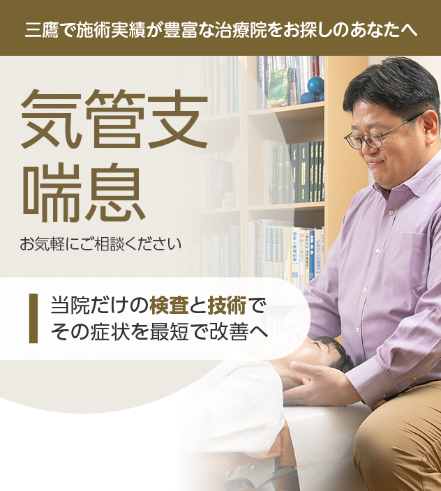 病院や他の治療院で改善しなかったとしても、諦める必要はありません。気管支喘息でお困りなら、豊富な施術実績を誇る当院にお任せください。