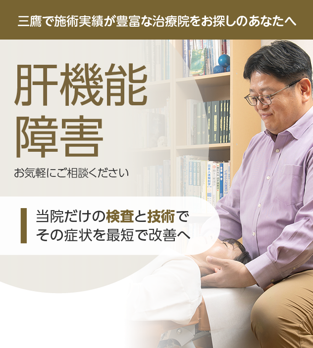 病院やほかの治療院で改善しなかったとしても諦める必要はありません。肝機能障害なら、豊富な施術実績を誇る当院にお任せください。