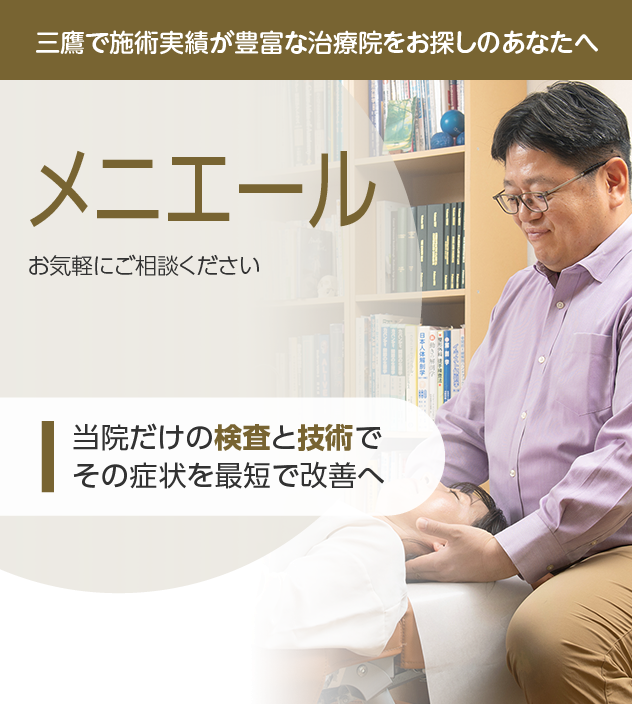 病院やほかの治療院で改善しなかったとしても諦める必要はありません。メニエール病なら、豊富な施術実績を誇る当院にお任せください。