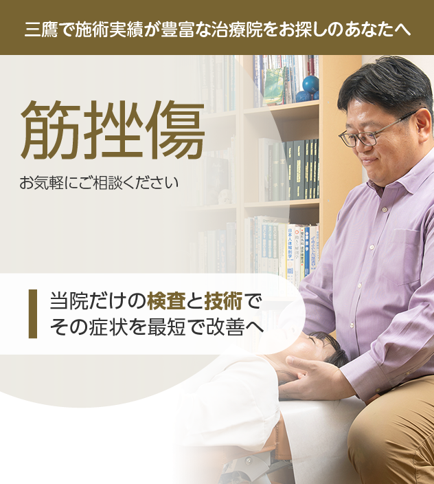 病院やほかの治療院で改善しなかったとしても諦める必要はありません。筋挫傷なら、豊富な施術実績を誇る当院にお任せください。