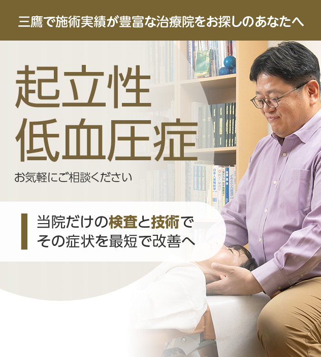 全身の姿勢と各部位の筋肉や神経の検査を行う当院のカイロプラクティックと起立性低血圧症は非常に相性がよく、劇的に改善するケースも見られます。