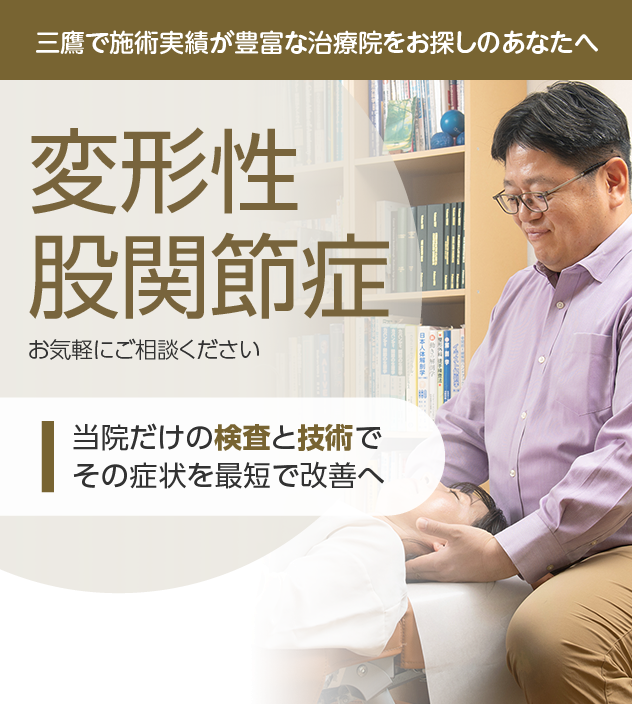 病院やほかの治療院で改善しなかったとしても諦める必要はありません。変形性股関節症なら、豊富な施術実績を誇る当院にお任せください。