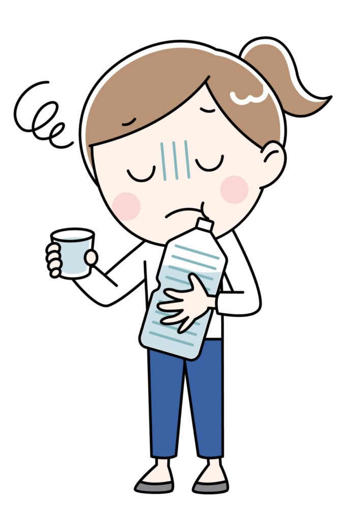 炎天下の現場で突然ふらつく 休憩しても頭痛と吐き気が取れない 夜は寝汗がひどく眠りが浅い 水分を取っているのにトイレ回数が極端に少ない スポーツドリンクでは回復...