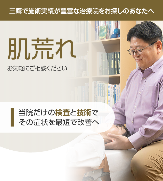全身の姿勢と各部位の筋肉や神経の検査を行う当院のカイロプラクティックと肌荒れは非常に相性がよく、劇的に改善するケースも見られます